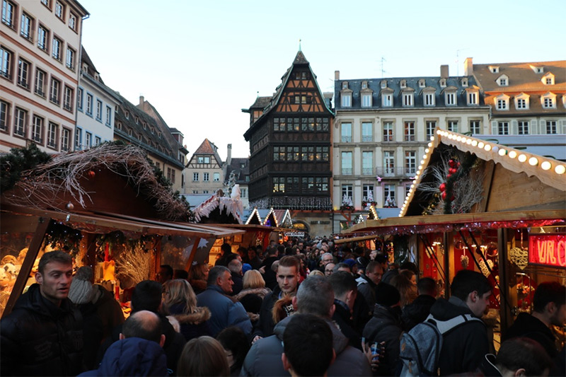 Zum ersten Mal seit vielen Jahren sind die Weihnachtsmärkte alle auf der Grande-Île (umgeben vom Ill-Fluss) in Straßburg versammelt – dies hat angesichts der Terroranschläge in Frankreich in den letzten Monaten seinen guten Grund: die Brücken sind abgesperrt, es finden Eingangs- und Taschenkontrollen statt. Auch zwischen den Weihnachtsbuden patroulliert schwerbewaffnetes Militär.