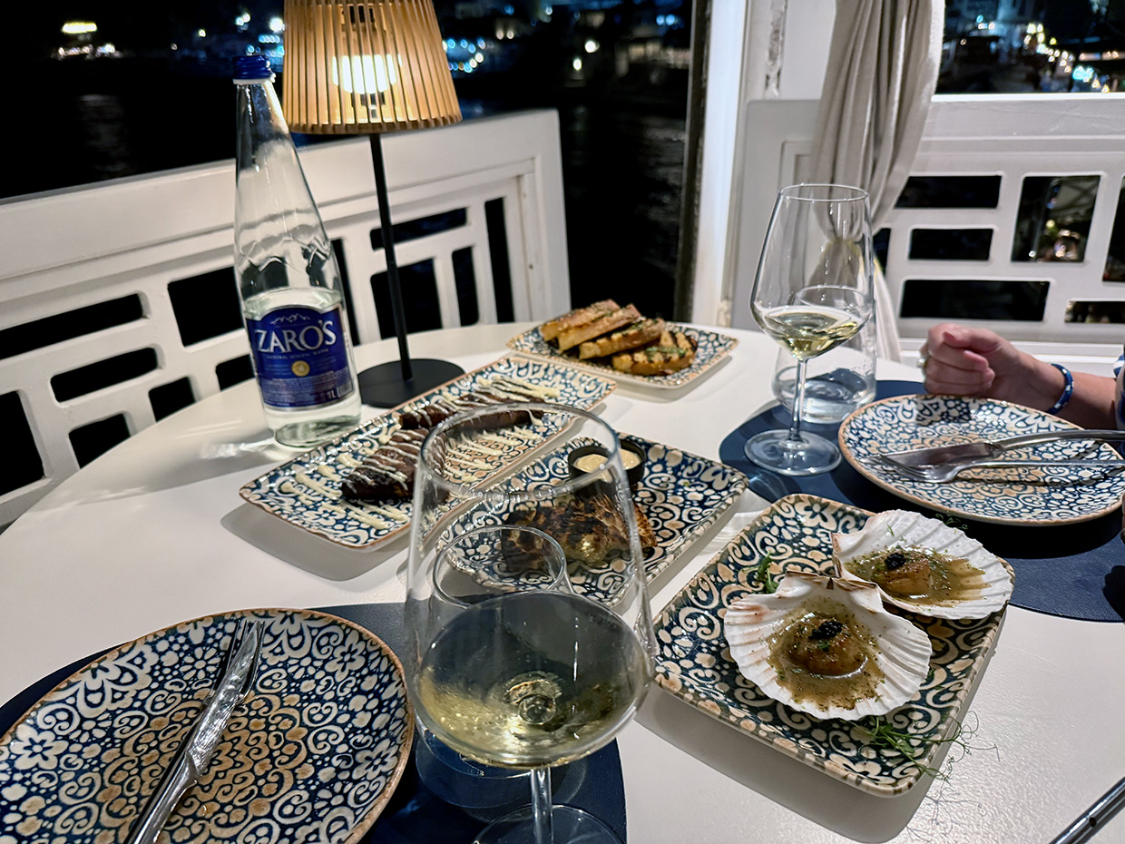(13.10.2023) Das SCALA hat auch 2023 nichts von seinem guten Ruf (und vor allem von der guten Küche) eingebüßt. Manos begrüßte uns herzlichst, ein wunderbarer Tisch mit Blick über die Bucht von Matala und den Ort war für uns reserviert, die „Fischplatte für 2“ wie beim letzten Mal ein einziger Genuss. Die Wein-Auswahl aus der umfangreichen Karte zum gewählten Essen kann man getrost Chef Manos überlassen, er findet die passenden Tropfen zu den gewählten Speisen!